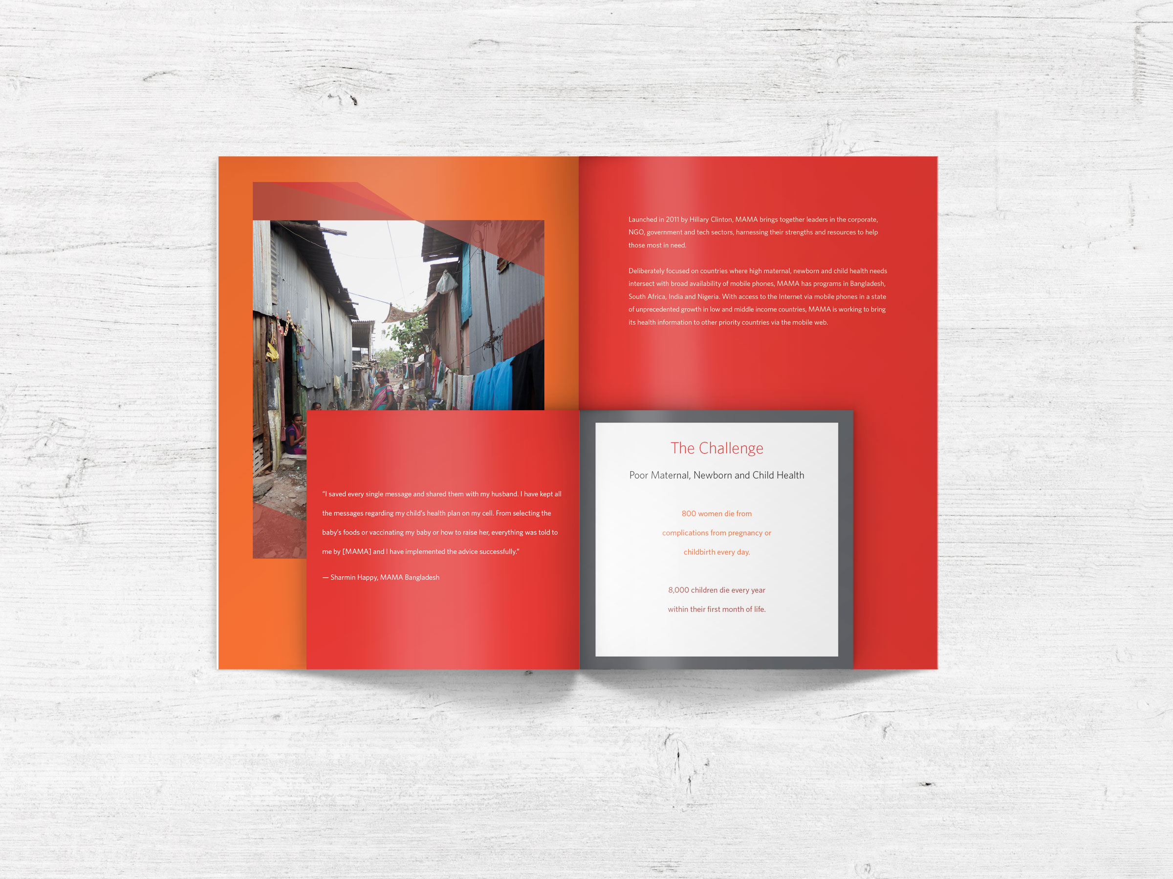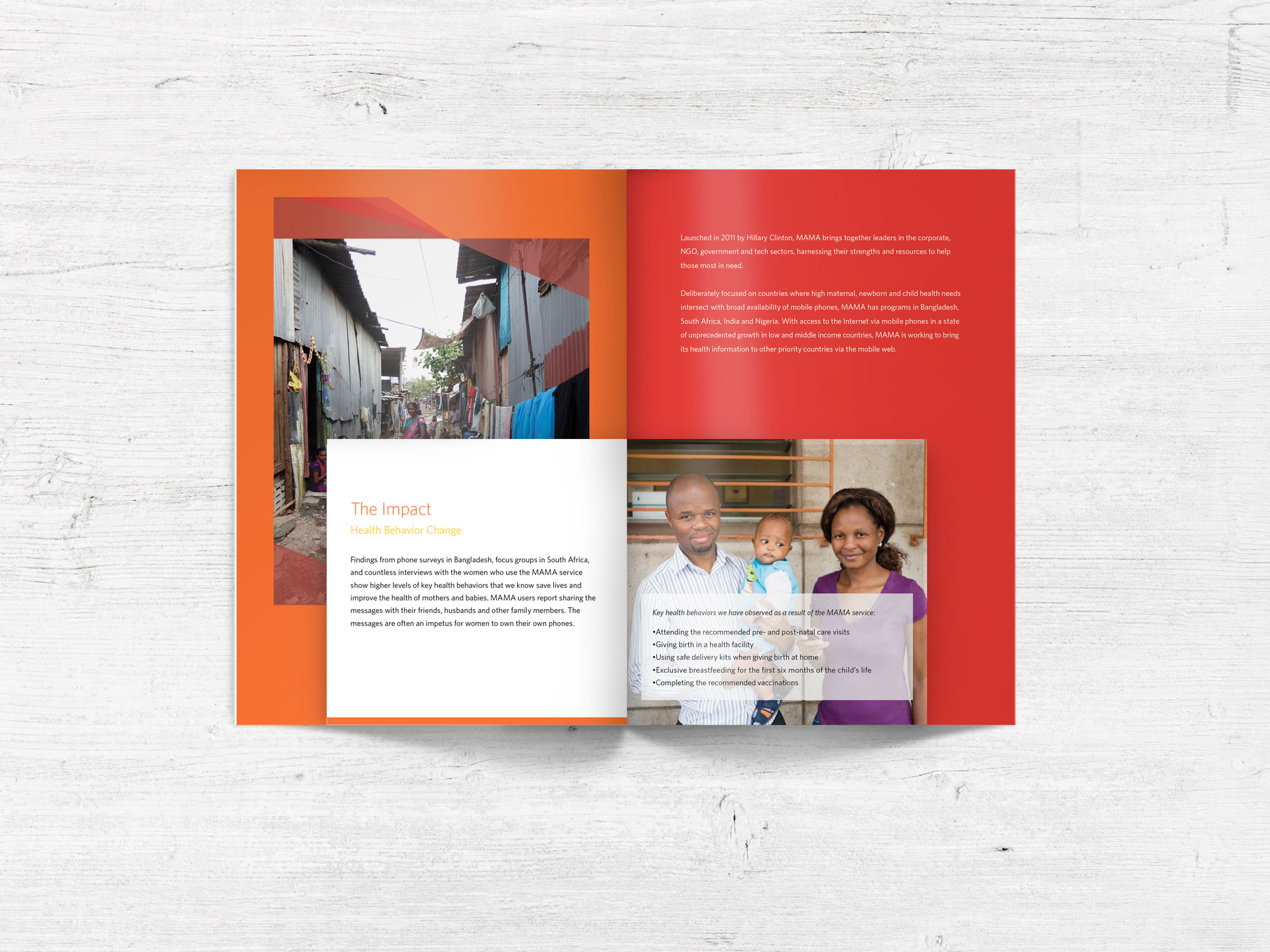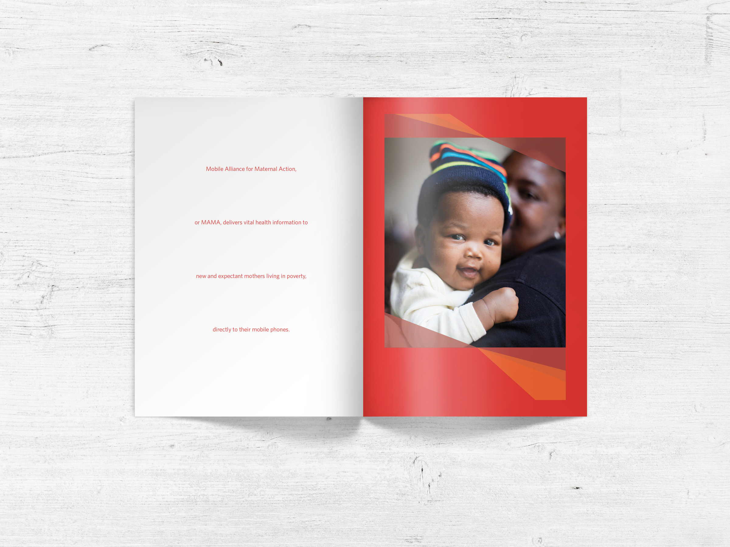 Brochure for MAMA, an initiative of the UN Foundation that engages an innovative global community to deliver vital health information to new and expectant mothers through mobile phones.