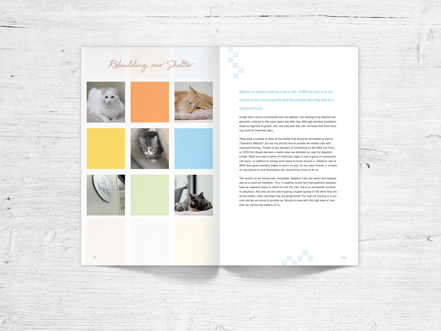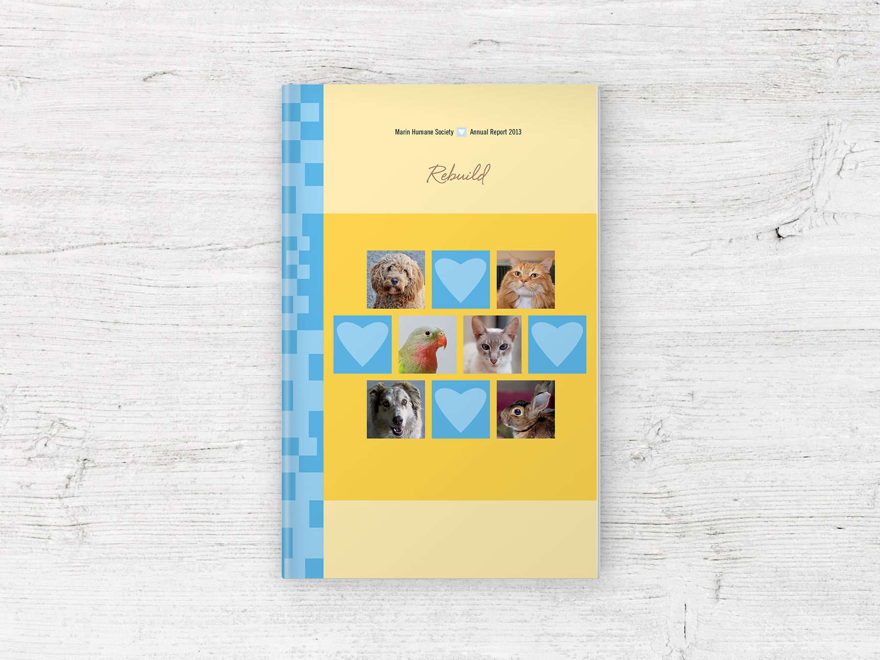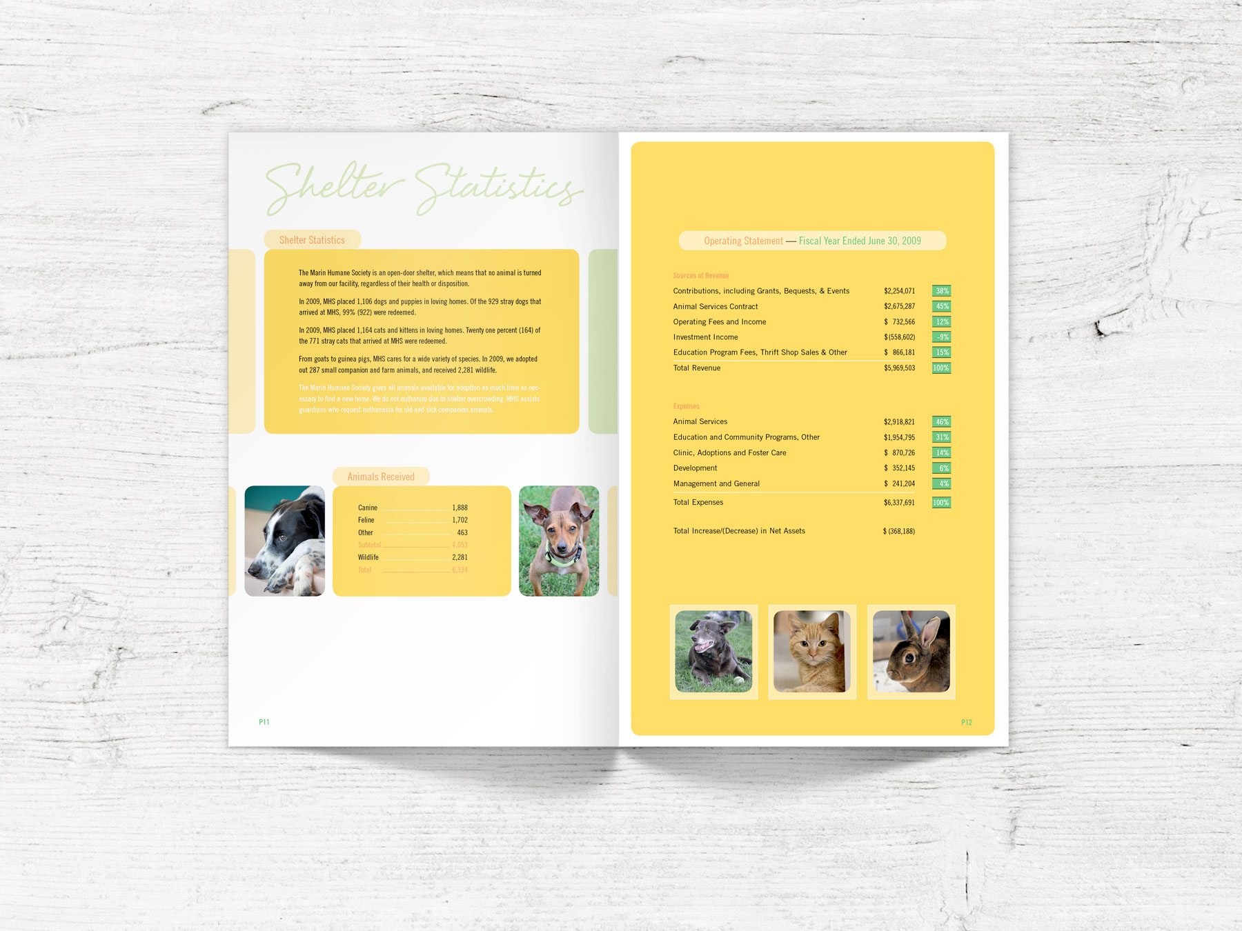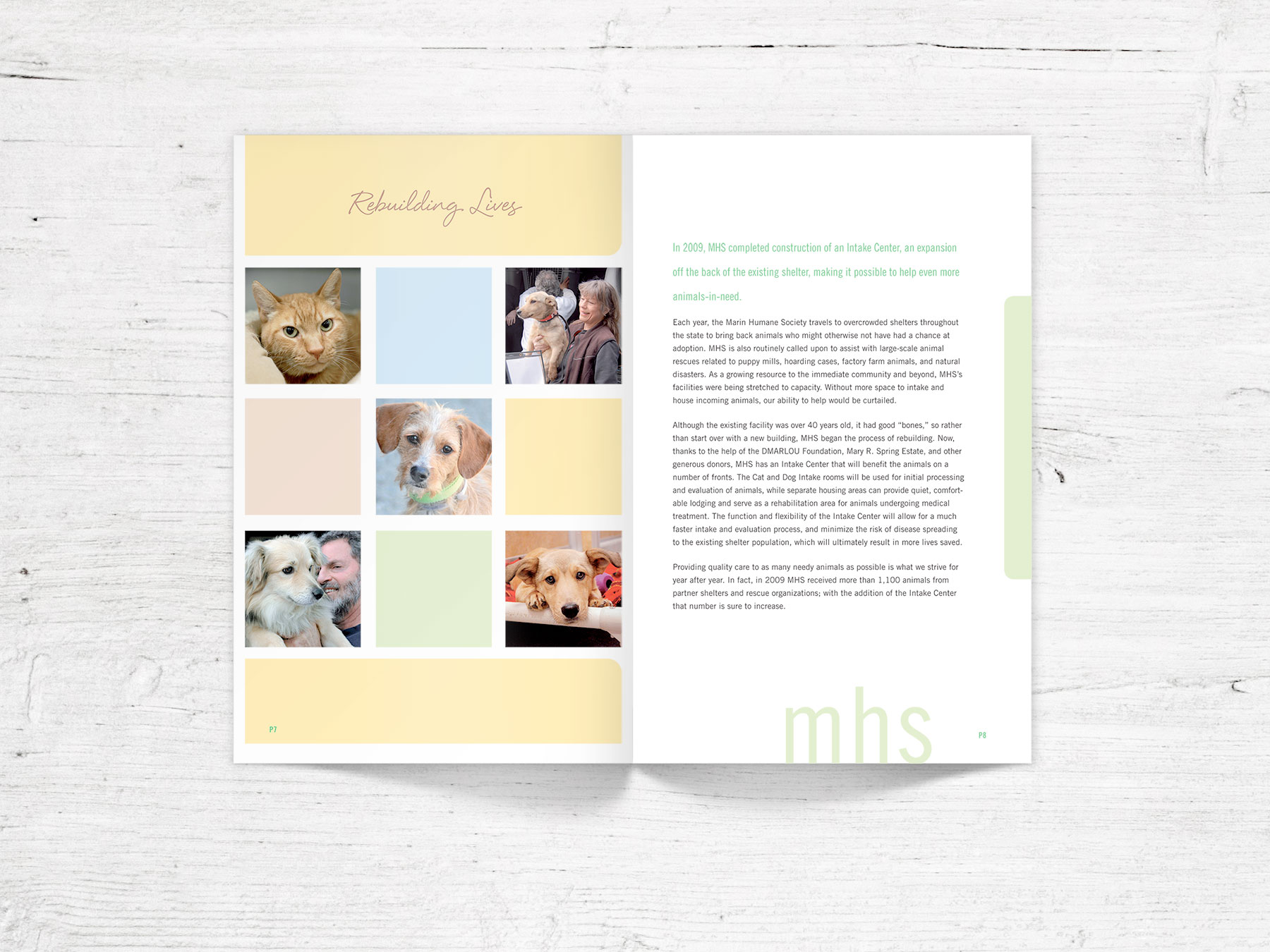 Annual report for the Marin Humane Society, an animal shelter that offers refuge, rehabilitation, and support services to more than 10,000 domestic animals and wildlife each year.